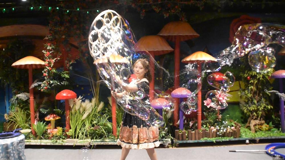 ——七彩的泡泡梦幻般环绕身旁,仿佛置身于童话故事中,最受小宝贝喜爱的表演项目,分分钟抓住你的双眼。